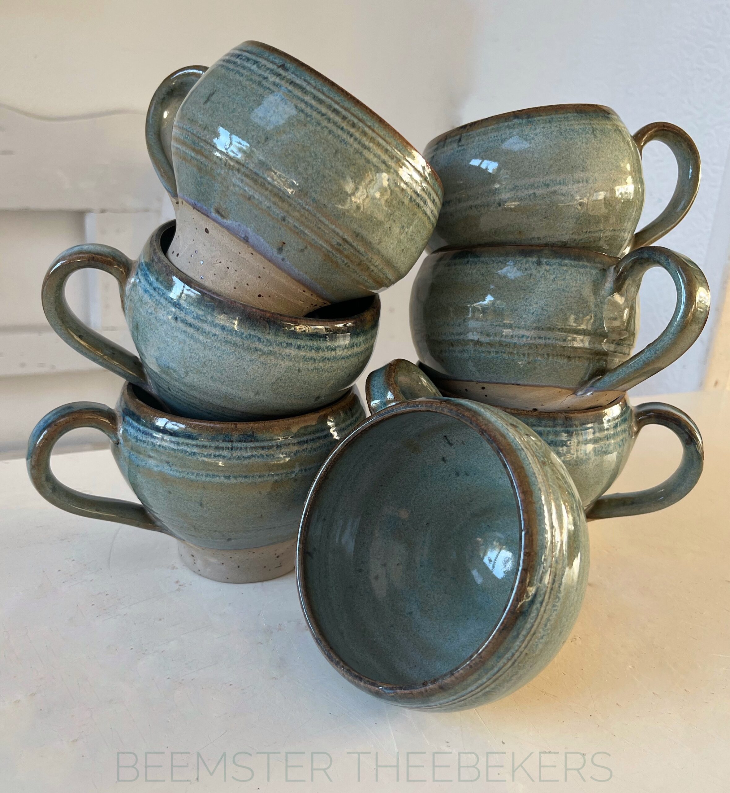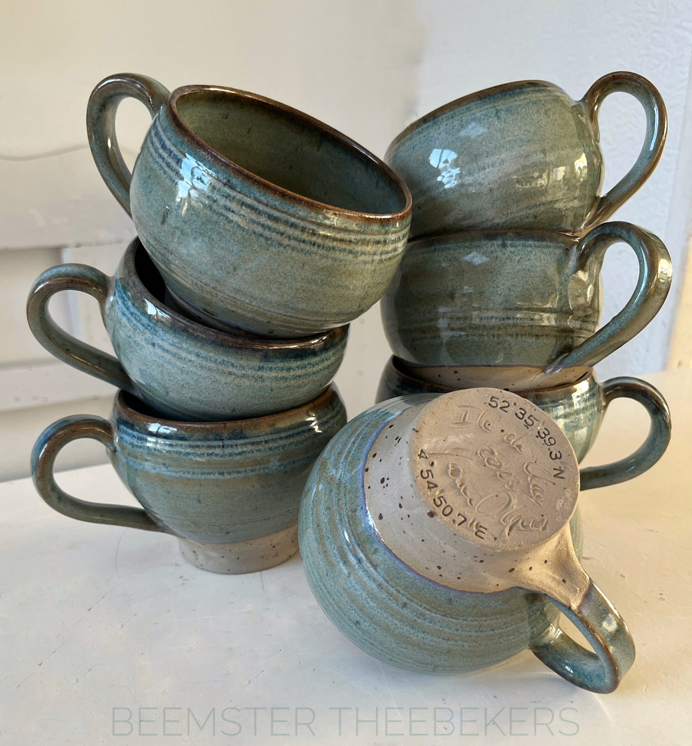 Net uit de oven. Beemster theebekers. Lekker groot en met oor om je hete thee, chocomel of soepje uit te slurpen.