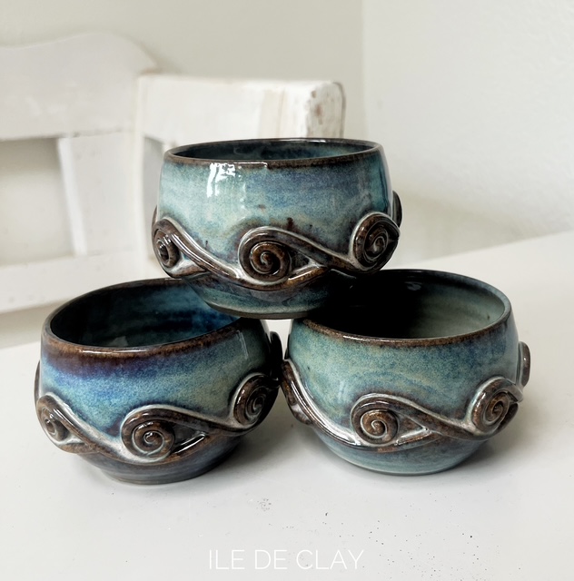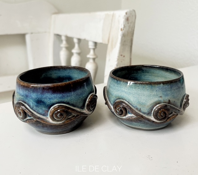 Vormen en kleuren kunnen omdat alles handwerk is, onderling licht verschillen. De maat is ongeveer 5,5 cm hoog en 9,5 cm breed. Inhoud ca. 200ml.