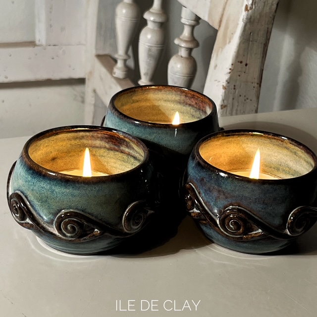 Lichtje gemaakt met Beemsterklei en Beemsterglazuur over een zwarte steengoed klei. De lichtjes zijn voorzien van spiraalvormige elementen en de coördinaten van de Beemsterklei op de onderzijde. Ze zijn erg leuk met een kaarsje of lichtjessnoertje erin. Ik kan er tegen een meerprijs van €4,50 ook een kaarsje voor je ingieten. Bestel dit er dan apart bij.