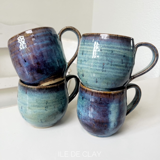 De mokken zijn gemaakt van een klei met subtiele pyrietspikkels, waarover een laag Beemster klei is aangebracht. Het speciaal ontwikkelde glazuur reageert op deze klei en zorgt voor een betoverend kleurenpalet: van diepe groenen tot bij sommige zelf verrassende paarstinten. Geen twee mokken zijn hetzelfde, maar toch passen ze allemaal heel goed bij elkaar.